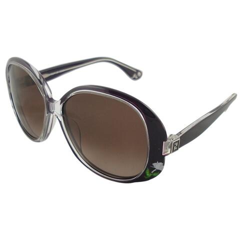 Modern Sunglasses from Fendi with Large round Glasses, a flower detail on the frame and the FF logo on the sides. Comes in a Hardcase with Marchon papers and Polishing Cloth.