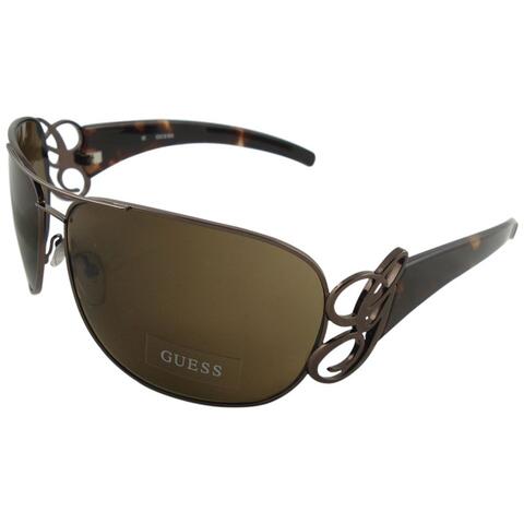 Modern and Beautiful Sunglasses from Guess with large Glasses and with the famous G logo on the sides. A pair of sunglasses for the exclusive woman. Comes in a Case with De Rigo papers and Polishing Cloth.