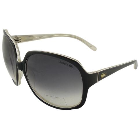 Modern Sunglasses from Lacoste with large square Glasses and with the famous Crocodile Logo engraved on the sides. Comes in a Case with Charmant Group papers, Polishing Cloth and Etui.