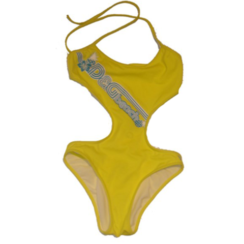 A Swimsuit in summer colours. With big D&G Beach print on front.